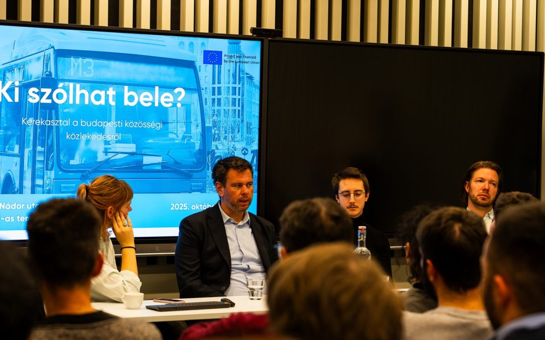A 21 Kutatóközpont „Ki szólhat bele? Kerekasztal a budapesti közösségi közlekedésről” címmel szervezett beszélgetést október 14-én a CEU Nádor utcai épületébe, ahol Kiss Kata, a 21 Kutatóközpont munkatársa moderálása mellett beszélgetett Baranyai Zsolt, a Hétfa városfejlesztési igazgatója Vitézy Dáviddal, a Podmaniczky Mozgalom fővárosi frakcióvezetőjével, valamint Gregus Balázzsal, a Wigo autómegosztó munkatársával. A mintegy kétórás beszélgetés fő kereteit a zöld mobilitás és annak budapesti lehetőségei jelentették, ideértve a lakhatás és az agglomerációs kiköltözés szorosan kapcsolódó kérdéseit, de szóba kerültek még többek közt a főváros kétszintű igazgatási rendszeréből fakadó kihívások, a településmenedzsment-kultúra hiányosságai, a dzsentrifikáció vagy épp a társadalmi bevonás lehetőségei és korlátai is.